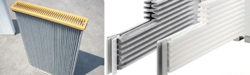 塑燒板的結(jié)構(gòu)形狀一般為長方形,過濾部位為波浪形板式結(jié)構(gòu),設計成波浪形是為加大其除塵過濾有效面積。